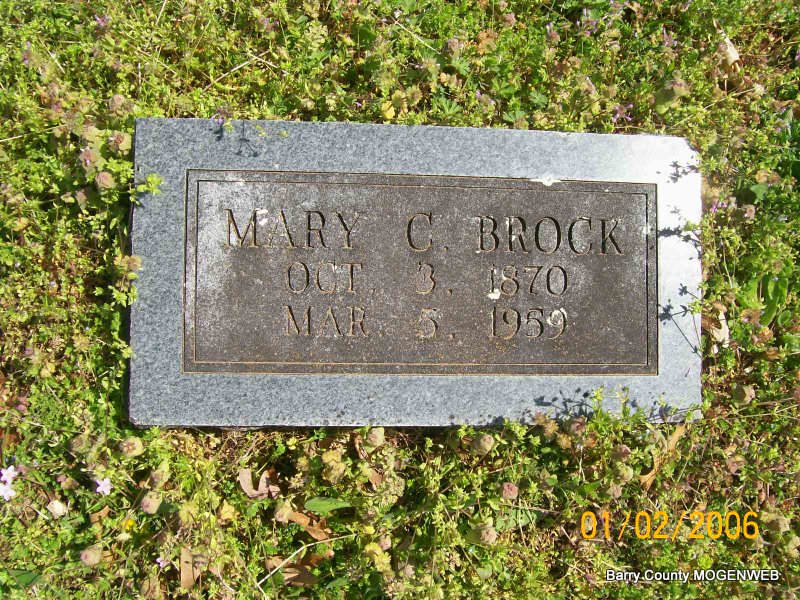 | BROCK, Marriah Catherine "Mary C." (SANDERS) | Oct. 3, 1870 Stone Co., MO |