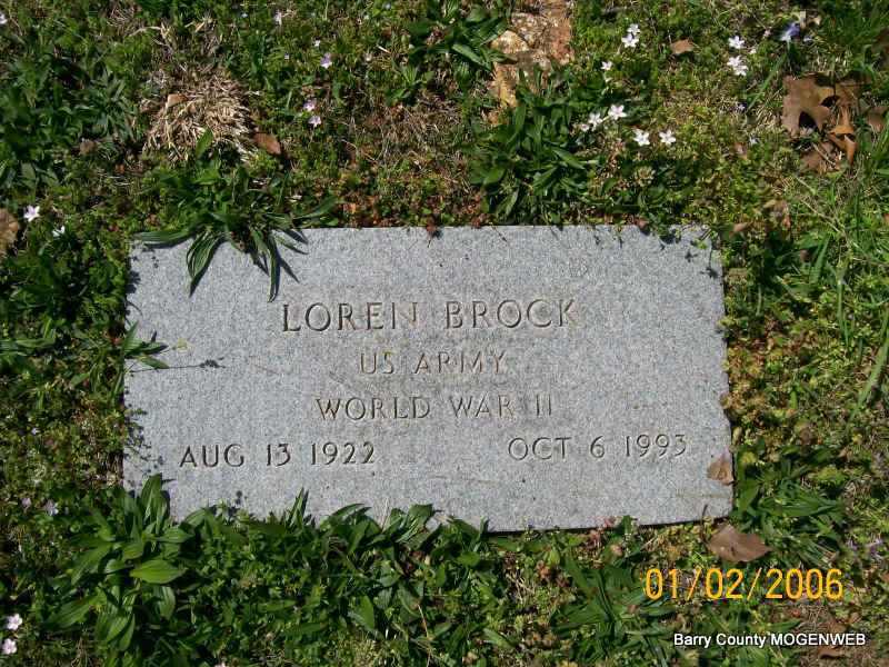 | BROCK, Loren | Aug. 13, 1922 Shell Knob, Barry Co., MO |