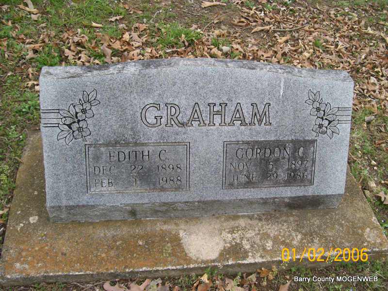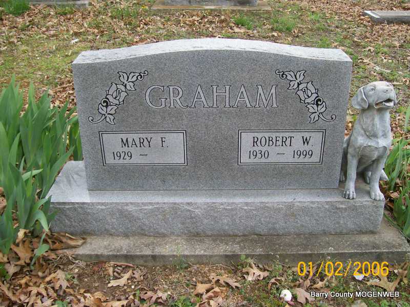SSW: Mary F. - Research Note: Son of Gordon C. Graham and Edith H. Cloyes. He was an Army veteran of the Korean conflict and received a master's degree in 1954 from the University of Illinois. He was a commodities grain merchandiser with Farmland Industries in St. Louis and Overland Park, Kansas, and moved to Shell Knob in 1984. He was a member of the Trinity Presbyterian Church in Shell Knob, a member of the Central Crossing 674 AF and AM Masonic Lodge and a 32nd Degree Scottish Rite Mason. He was a member of the Abou Ben Adhem Shrine Temple in Springfield and the Shell Knob Shrine Club. He married Mary Carter on March 22, 1951, in Champaign, Illinois. Memorial services will be held at a later date under the direction of Williamson Funeral Home of Shell Knob. | Transcription Penny Cooper Bailey Census SS Claims Index Williamson Funeral Home Phyllis Long Photo Jay Trace |