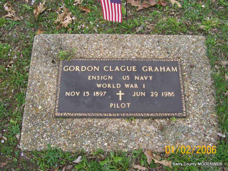 June 29, 1986 | SSW: Edith C. - Research Note: Son of Robert Taylor Graham and Harriet Clague. - Military Stone - Military Inscription: "ENSIGN US NAVY WORLD WAR I - PILOT" | Transcription Penny Cooper Bailey IL Birth Records Phyllis Long Photos Jay Trace |