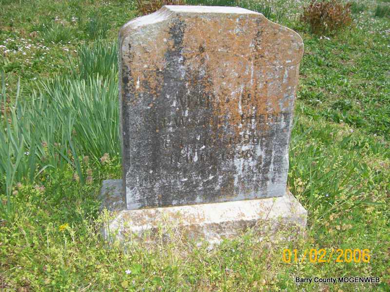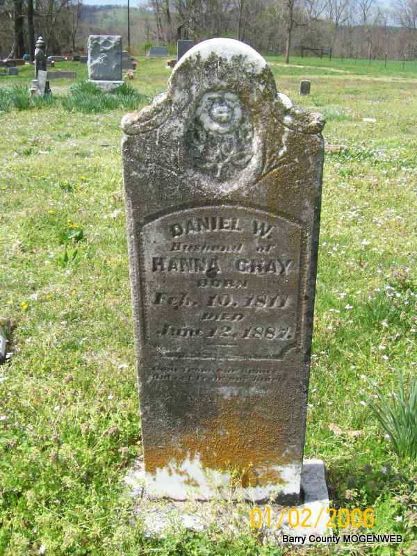 Research Note: Researchers say his first wife was Mary Gander born 1811 and died 1841 buried at Elkhart Co., IN. Daniel W. Gray married Hannah Goodrich on Sept. 18, 1842 in Elkhart Co., IN. Hannah is buried at Brookline Cemetery, Brookline, Greene Co., MO. Born 1822, died 1895. Posted at findagrave by Harold and Wanda Blackwell: Husband of Hannah Gray. Son of Thomas and Mary Gray, both parents were born in New Jersey. First married to Mary Gander on August 5, 1830 in Franklin Co., Ohio. Mary died in 1841. While living in Ohio Daniel worked as a County Clerk, School Examiner and Justice of the Peace. He then married Hannah (b. 1823 in Indiana) and had two sons, Homer (b. 1862 in Wisconsin) and Ross (b. 1866 Michigan). At some point they ended up in Barry Co., Missouri as they are listed there on the 1880 Federal Census. In Missouri he worked his farm, helped by his wife Hannah and their two boys. | Transcription Penny Cooper Bailey Note IN Marriage Index Phyllis Long Photo Jay Trace |