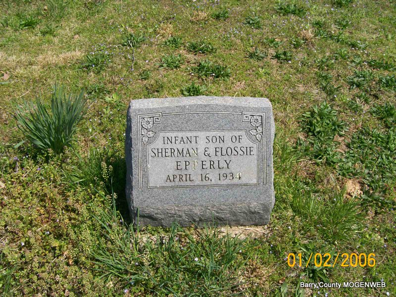 | EPPERLY, Infant | No Date | Apr. 16, 1934 | Inscription: "Infant Son of Sherman and Flossie" - Research Note: Infant son of Sherman and Flossie (Painter) Epperly. | Transcription Penny Cooper Bailey Note Phyllis Long Photo Jay Trace |