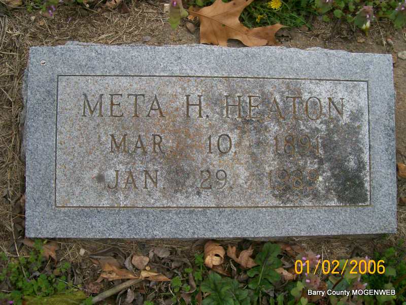 | HEATON, Orva Marie | Nov. 17, 1934 | Dec. 30, 2015 | Research Note: Photo of temporary marker at findagrave.com. Daughter of Roy J. and Meta H. (Gewecke) Heaton. Orva Marie Heaton, age 81, formerly of Shell Knob, Missouri, passed away Wednesday, December 30, 2015, in Mt. Vernon Place Care Center, Mt. Vernon, Missouri. No services are scheduled at this time. Cremation arrangements are under direction of Fohn Funeral Home, Shell Knob. | Census Fohn Funeral Home Phyllis Long |