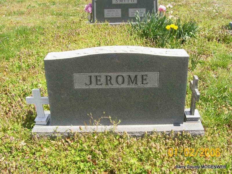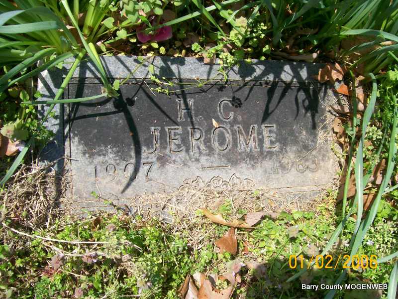 Research Note: Wife of Henry Clair Jerome. - Ruby C. "Granny" Jerome, 95, of Shell Knob, died yesterday, April 7, at St. John's Hospital-Cassville. Mrs. Jerome was a homemaker. Services will be 11 a.m. Saturday, April 10, at Williamson Chapel in Shell Knob. Burial will be in Painter Cemetery under the direction of Williamson Funeral Home of Shell Knob. - Plot Headstone | Transcription Penny Cooper Bailey Monett Times Census Phyllis Long Photos Jay Trace |