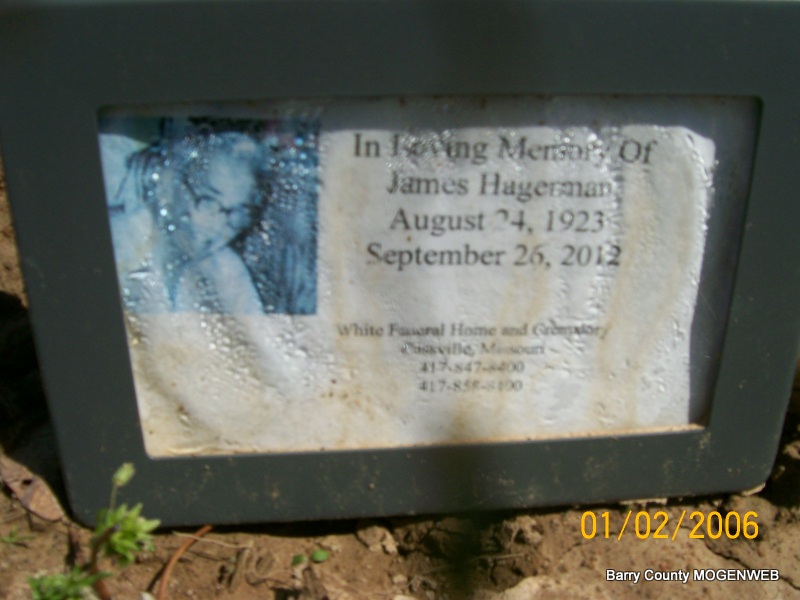 Research Note: He was the son of Wray and Helen (Dyette) Hagerman. He was the second generation carpenter following in the footsteps of his dad. On March 1942, he enlisted in the United States Army. He served in the Philippines and was awarded the Bronze Star Medal. On September 11, 1946 he was united in marriage to his wife of 66 years, Maxine Philibert in Wading River, New York. They moved to Shell Knob Missouri in 1989 after their retirement. He was preceded in death by his parents and one brother and one sister. - Temporary Marker | White Funeral Home Phyllis Long Photo Jay Trace |