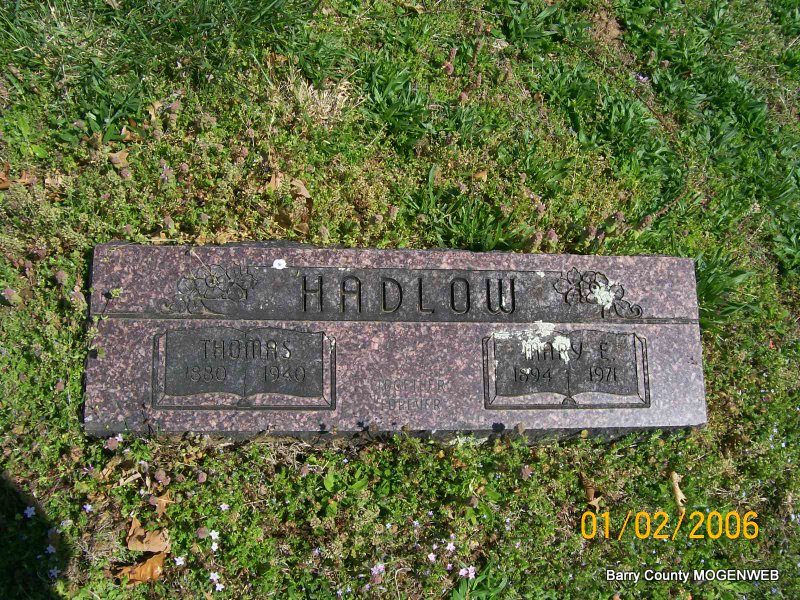 | HADLOW, Thomas Franklin | Jan. 20, 1880 Eagle Rock, Barry Co., MO |