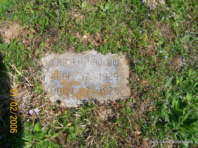 | HADLOW, Ermald | June 17, 1929 Shell Knob, Barry Co., MO |