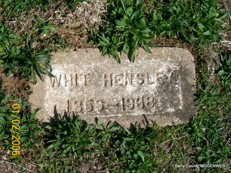 | HENSLEY, John "Whit" | 1856 | 1938 | Research Note: Son of John Hensley and Tempe Davis. 1920 Census, Whit is 65, widowed born 1855 MO; with his sister Nancy Jane Croft, age 75, widowed, born 1845 MO. | Transcription Penny Cooper Bailey Census Phyllis Long Photo Jay Trace Note Donna Cooper |
