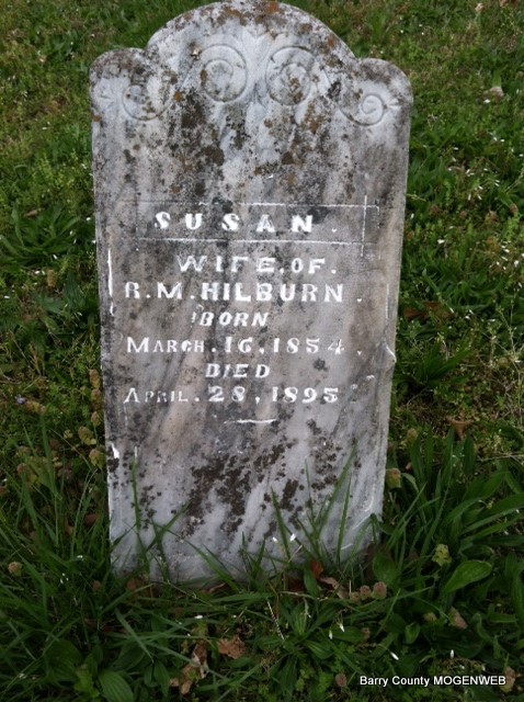| HILBURN, Susan (WALKER) | Mar. 16, 1854 | Apr. 26, 1895 Shell Knob Barry Co., MO |