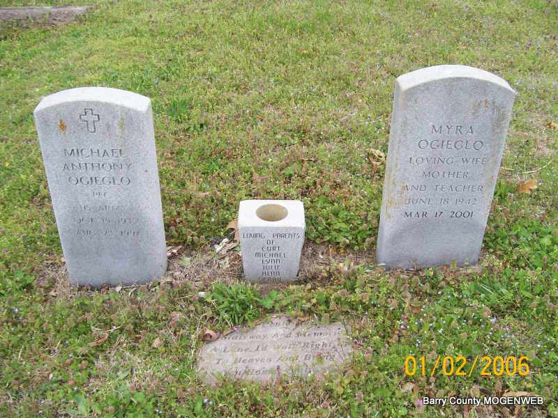 Inscription: "PFC US ARMY" - Research Note: Son of Casmer S. Ogieglo and Easla Berardinelli. He married Elizabeth Jean DePover, Myra Ogieglo, and Herta V. Zirtaut. He is Buried next to Myra. - Another Photo | Transcription Penny Cooper Bailey SS Claims Index Phyllis Long Photos Jay Trace |