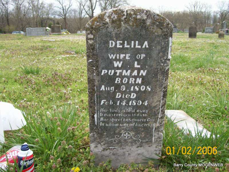 | PUTMAN, Delila | Aug. 9, 1808 | Feb. 14, 1894 | Inscription: "Wife of W. L." | Transcription Penny Cooper Bailey Photo Jay Trace |