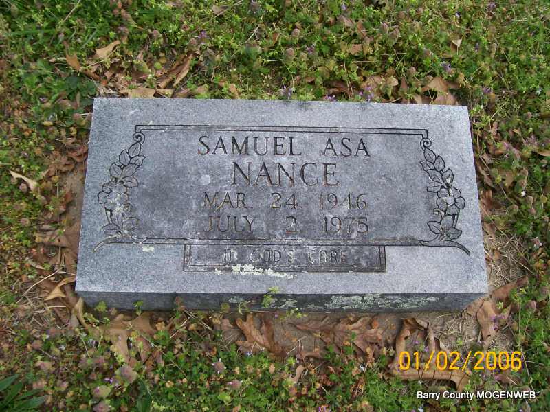 | NANCE, Samuel Asa | Mar. 24, 1946 | July 2, 1975 | Research Note: Son of Ralph Albert Nance and Fern Matilda Fowler. Ralph was the son of Asa and Mary Nance. | Transcription Penny Cooper Bailey Note Phyllis Long Photo Jay Trace |