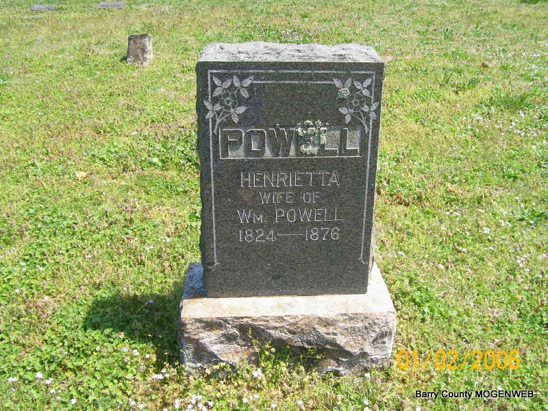 | POWEL, Henrietta | 1824 | 1876 | Inscription: "Wife of Wm. Powell" | Transcription Penny Cooper Bailey Photo Jay Trace |