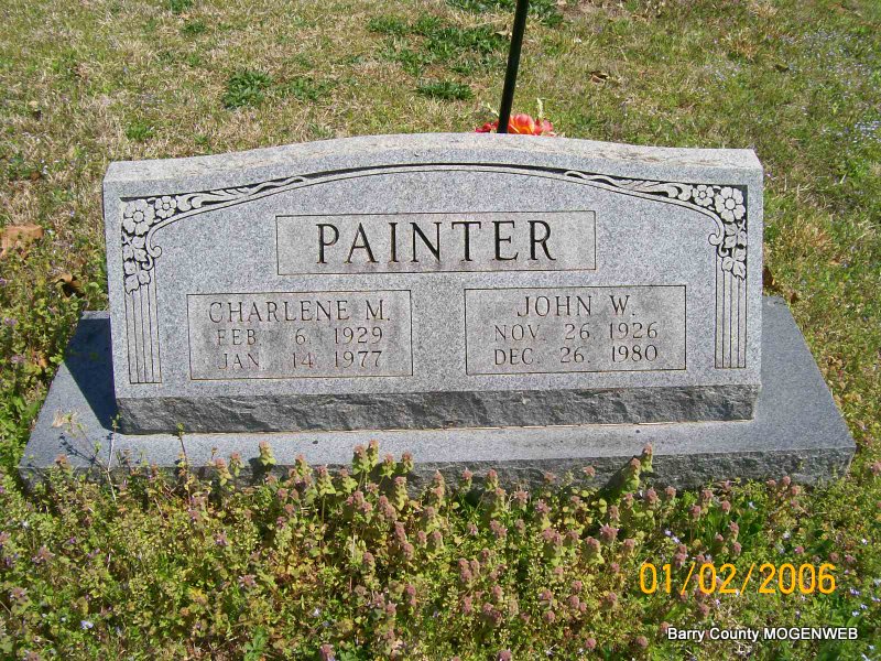 | PAINTER, Charlene M. (MARTIN) | Feb. 6, 1929 | Jan. 14, 1977 | SSW: John William - Research Note: Daughter of William Patrick Martin and Nancy R. Johnson. Charlene M. Martin married John William Painter on Apr. 12, 1948 in Kansas, Jackson Co., MO. | Transcription Penny Cooper Bailey Census MO Marriage Records Phyllis Long Photo Jay Trace |