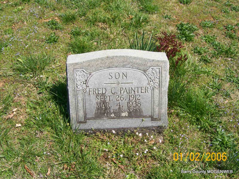 | PAINTER, Fred C. | Sept. 26, 1912 | Mar. 4, 1938 | Inscription: "Son" - Research Note: Son of Thomas and Martha (Cooper) Painter. | Transcription Penny Cooper Bailey Census Phyllis Long Photo Jay Trace |