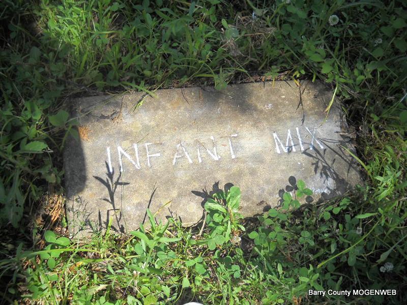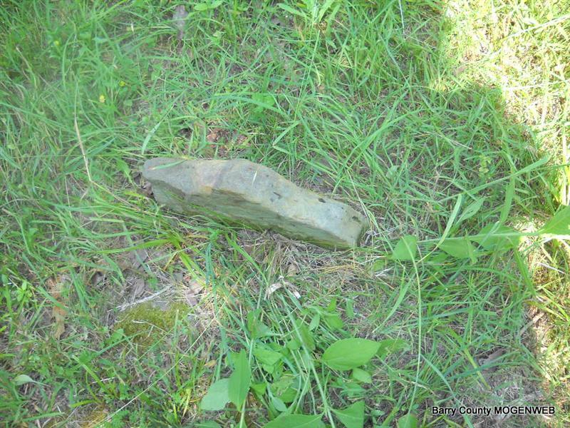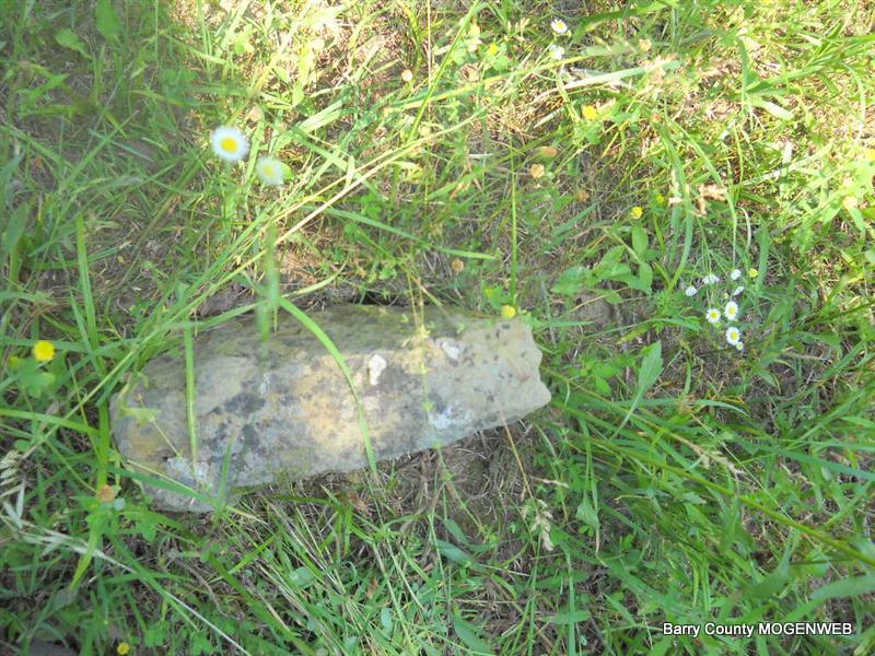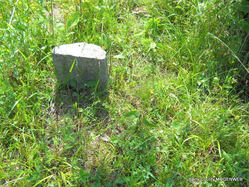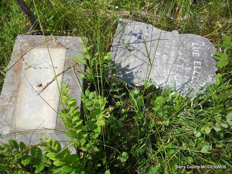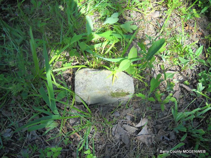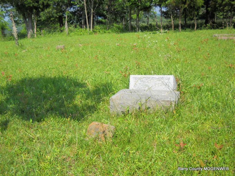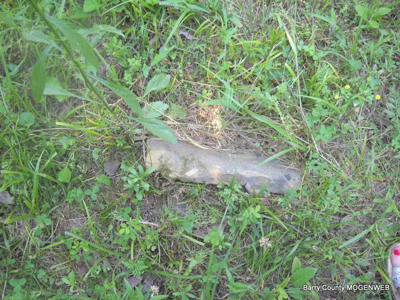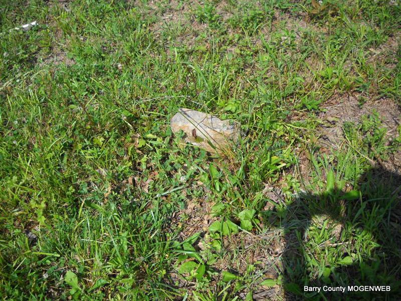 Inscription: "Daughter of W. M. and L. A." - Research Note: She was a daughter of William Newton, born KY, and mother's maiden name was Perkins (Larinda Perkins), born Barry Co., MO. Edward Newton of Seligman, MO was the informant. This stone is broken off the base and on the ground. - Another Photo | Transcription Roger and Brandon Death Certificate Photo Phyllis Long Photo Donna Cooper Photo Phyllis Long |