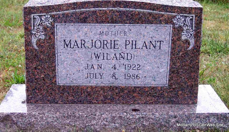 | PILANT, Marjorie (WILAND) | Jan. 4, 1922 | July 8, 1986 | Inscription: "Mother" - Research Note: Daughter of Albert Lewis Pilant and Mary Lowe. Apparently married a Mr. Wiland. | Census Phyllis Long Photo Diana Cope |