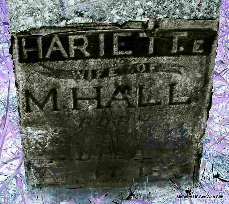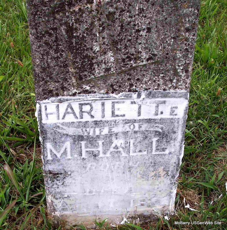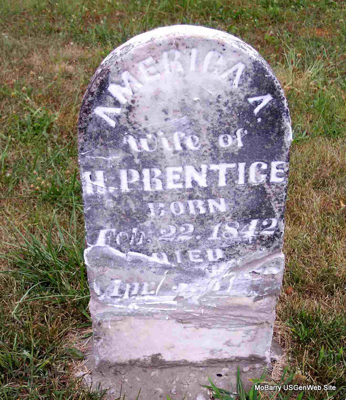 Inscription: "Wife of H. Prentice" - Research Note: Wife of Hampton Prentice. Daughter of John N. Minor and Lydia Ann Hunt. Hampton Prentice second married Eliza J. Black on Mar. 7, 1875 in Barry Co., MO. Eliza was the daughter of William M. Black and Jane S. Miller, listed on this page. | Census MO Marriage Records Phyllis Long Photo Diana Cope |