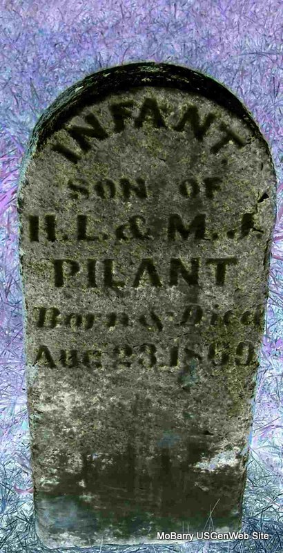 | PILANT, Infant | Aug. 23, 1860 | Aug. 23, 1860 | Inscription: "Infant Son of H. L. and M. J." - Research Note: Son of Henderson Lewis Pilant and Martha Jane Mithorne. - Computer Enhanced Negative | Note Phyllis Long Photo Diana Cope |