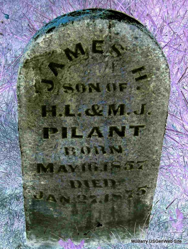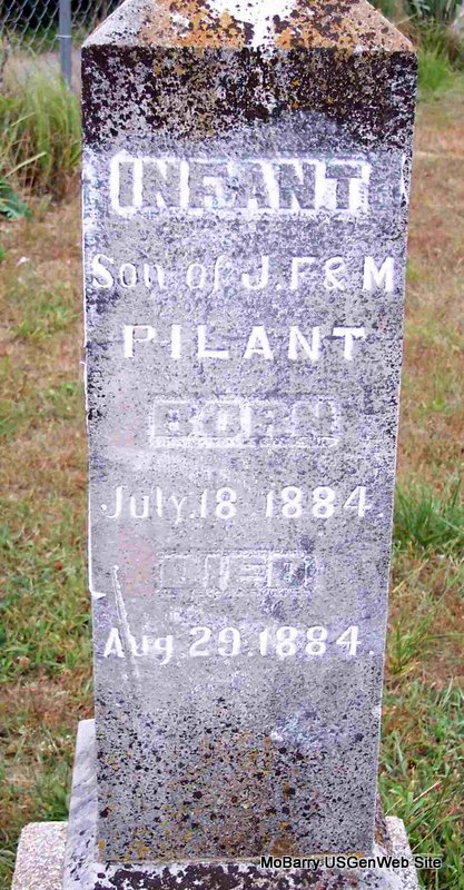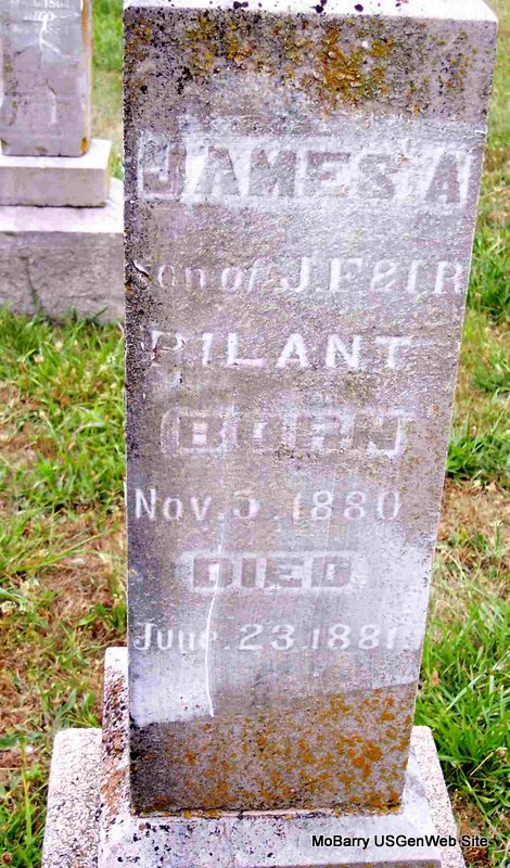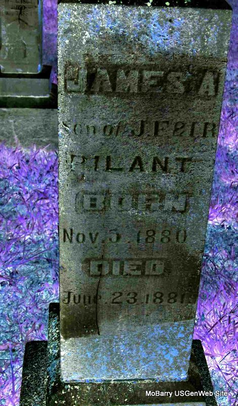 | PILANT, James A. | Nov. 5, 1880 | July 23, 1881 | Inscription: "Son of J. F. and I. R." - Research Note: Son of John Frank and Irena R. Pilant. - Computer Enhanced Negative - Back of Stone | Note Phyllis Long Photo Diana Cope |