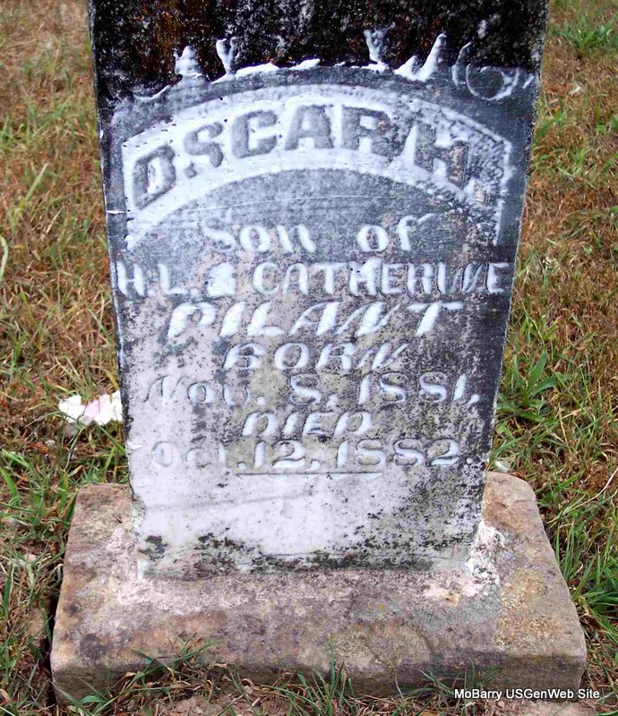 | PILANT, Oscar Henderson | Nov. 8, 1881 | Oct. 12, 1882 | Inscription: "Son of H. L. and Catherine" - Research Note: His father was Henderson Lewis Pilant, died before Oscar was born. He fell in a well that he was digging and died from the effects of the fall. His mother was Ursula Catherine Edwards. | Note Loretta Pilant Vinson Photo Diana Cope |
