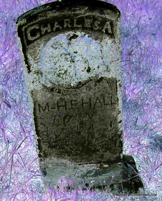 Inscription: "Son of R. M. and M." - Research Note: Son of Robert M. Black and Mary Henley. Bonnie's post had his death year as 1883, which is incorrect according to the stone. - Computer Enhanced Negative | Headstone Bonnie Black Hankins Photo Diana Cope |