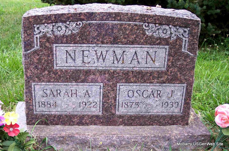 SSW: J. W. - Inscription: "Wife of J. W." - Research Note: Daughter of Gabriel P. Wright and Mildred Wren. Her death Certificate has her father as Gabriel Bright. The obit has Wright. Marriage record has Right. Mary A. Wright married Joseph W. Allison on Nov. 8, 1866 in Cooper Co., MO. Mrs. Mary Allison, age 61, married Walter A. Anderson, age 78, on Dec. 10, 1914 in Barry Co., MO. She was the widow of Walter Anderson. Her name was Anderson when she died but buried under Allison. Bud Allison of Cassville, MO, was the informant. She was 92 years old and cause of death was fracture of the neck from falling off a chair. - Sept. 1933, Cassville Democrat - Mary Ann Wright was born in Kentucky. She died at the home of her daughter, Mrs. Will Dodge, in Cassville, at the ripe old age of 92 yrs, 2 mo, and 11 days. When only a small child, she came to Cooper Co, Mo, with her parents, where she grew to womanhood. On Nov. 9, 1866 she was united in marriage to Joseph Warren Allison. To this union 5 children were born. One died in infancy, and a few years ago daughter Mrs. Marion Hassee passed away. After the death of her husband, Mr. Allison, she was married to Walt Anderson, who lived only a short time. She professed faith in Christ in early life, united with the Baptist Church and remained in this faith until death. She is survived by children Mrs. Mattie Dodge, Bud and Ed Allison, 14 grandchildren, 7 great-grandchildren plus many friends. A quartet composed of Clinton Blythe, Chas Willis, Mrs. Glen Pear and Mrs. John Ray, furnished music at the funeral services. - Oak Ridge News: Will Dodge, wife and daughter, visited Mrs. Dodge's mother and brother, Mrs. Anderson and Ed Allison and family Saturday night. - December 9, 1915, Thursday, Cassville Republican - Oak Ridge News: Ed Allison, near the Sparks school house, is moving to his mother's Mrs. Anderson, near Oak Ridge. - Back of stone | Online Obit Death Certificate Online Newspapers MO Marriage Records Census Phyllis Long Photo Diana Cope |