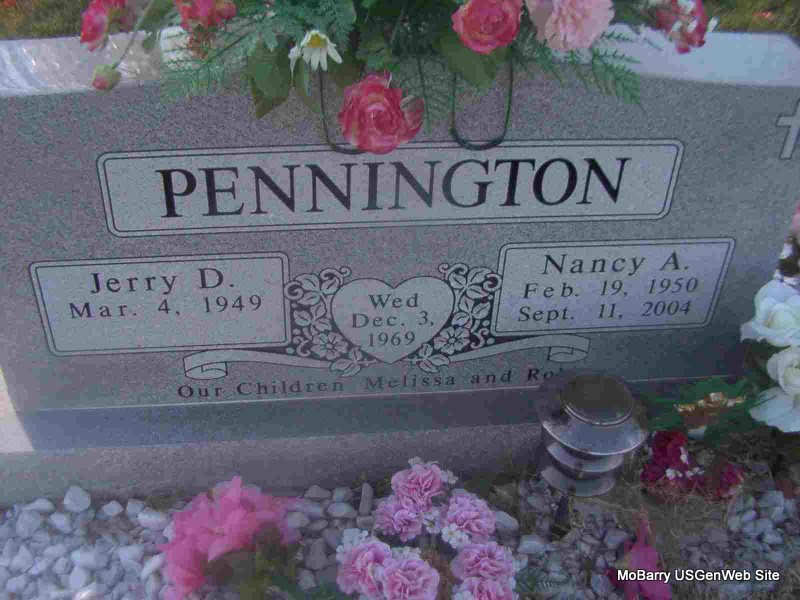 SSW: Jerry D. - Inscription: "Wed Dec. 3, 1969" "Our Children Melissa and Robin" - Research Note: She was the daughter of Frank and Pearl (Mosher) Hood. She married J. D. Pennington on December 3, 1969, in Miller, MO. She was preceded in death by one grandchild. | Monett Times Phyllis Long Photo Jay Trace |