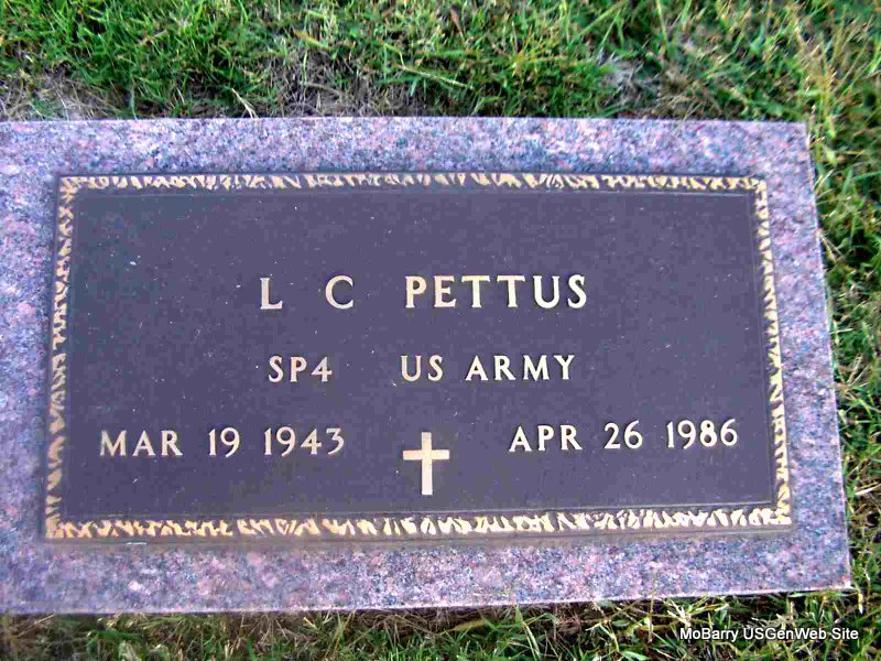 Apr. 26, 1986 | Inscription: "SP4 US ARMY" - Research Note: Son of James Wheeler Pettus and Rhetta Matilda Thigpen. | Note Phyllis Long Photo Jay Trace |