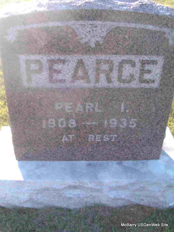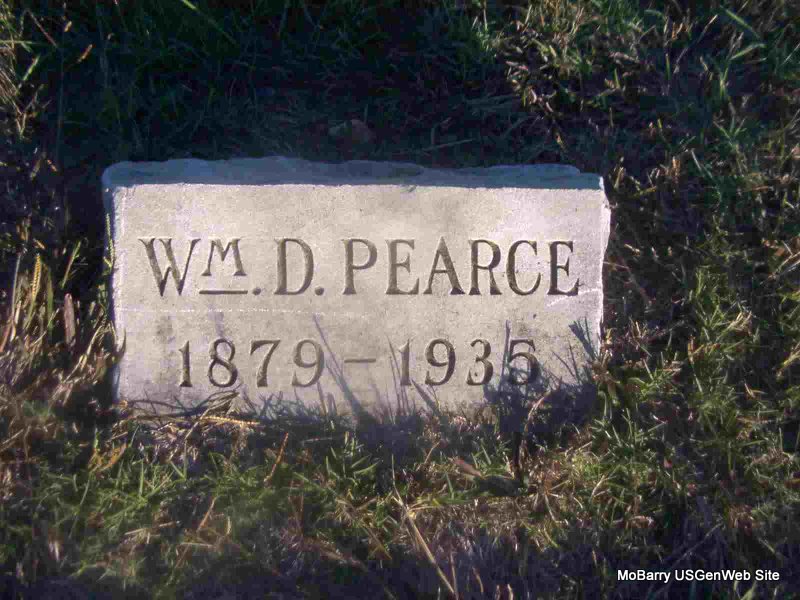 | PEARCE, William D. | 1879 | 1935 | Research Note: Son of Dudley N. Pearce and Lilla I. Gridley. William D. Pearce married Ethel Horn on Sept. 15, 1917 in Joplin, Jasper Co., MO. - Plot Stone | Census MO Marriage Records Phyllis Long Photo Jay Trace |