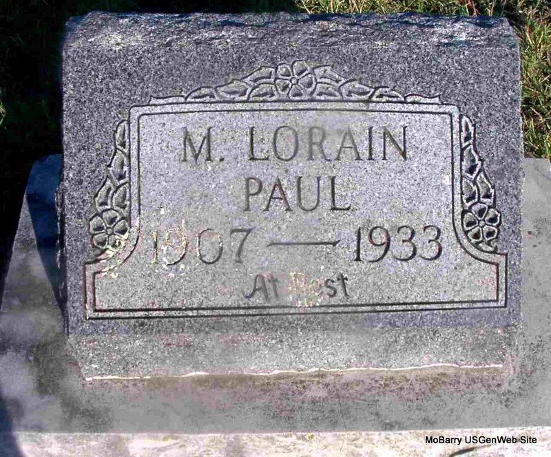 | PAUL, Mary Lorain (ROLLINS) | Jan. 10, 1907 Clever, Christian Co., MO |