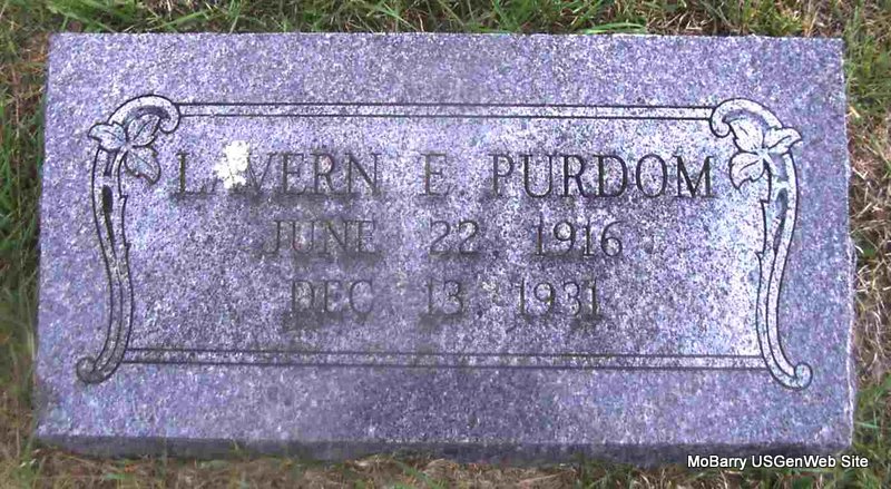 | PURDOM, Lavern E. | June 22, 1916 | Dec. 13, 1931 | Research Note: Son of Commodore William Purdom and Gertrude Bell (Stumpff) (Duncan) Purdom. | Census Phyllis Long Photo Jay Trace |