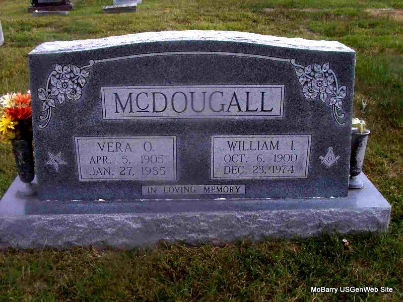 | MCDOUGALL, William Ira | Oct. 6, 1900 | Dec. 23, 1974 | SSW: Vera O. - Inscription: "In Loving Memory" - Research Note: Son of William Hamilton McDougall and Cora Columbia Brown. | Census Phyllis Long Photo Jay Trace |