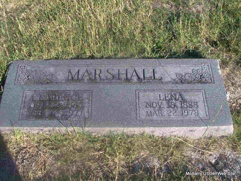 | MARSHALL, Lena (KIRBY) | Nov. 18, 1888 | Mar. 22, 1978 | SSW: Clarence - Research Note: Anna Lena Kirby was the daughter of Benjamin Kirby and his second wife Ennayetta Kirby. Benjamin is buried at Purdy Cemetery. Clarence Marshall married Lena Kirby, age 17, on Aug. 26, 1906 in Barry Co., MO. Benjamin Kirby, father of Lena, gave consent. - September 8, 1906, Saturday, Cassville Democrat - Purdy News Items: Clarence Marshall and Miss Lena Kirby were recently married. | Online Newspapers Census Phyllis Long Photo Jay Trace |