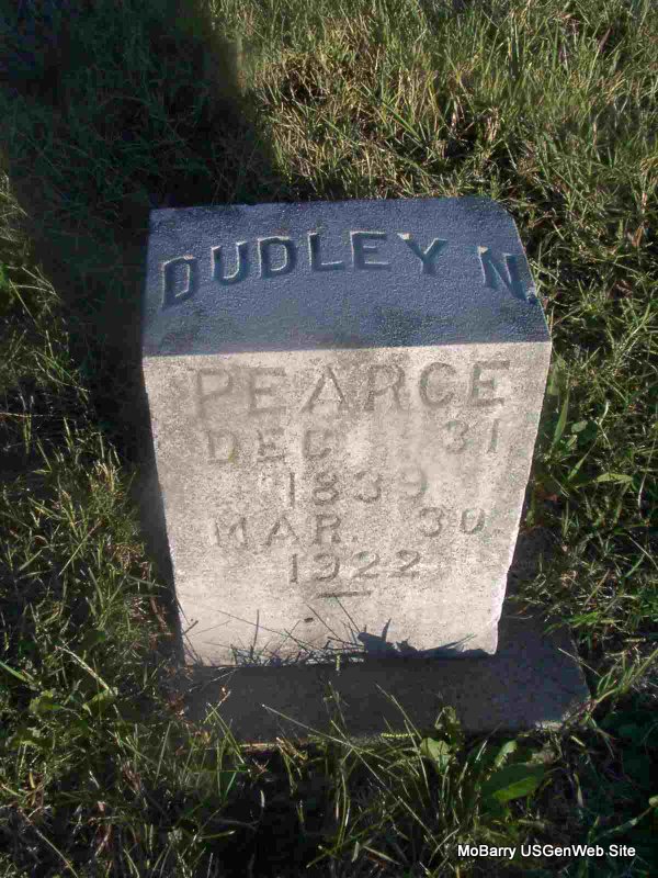 Research Note: His death certificate reads that his mother's maiden name was Gridley which is incorrect. His wife was Lilla Gridley. Indexed as Dodley Pearce. Gary Pearce was the informant. Son of Richard M. Pearce and Mary Melissa Downs. - Plot Stone | Death Certificate Donna Cooper Census Phyllis Long Photo Jay Trace |