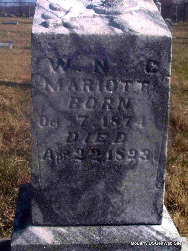 | MARIOTT, William N. C. | Oct. 7, 1874 | Apr. 22, 1893 | Research Note: Son of James G. Mariott and Mary C. Smith. | Census Phyllis Long Photo Jay Trace |
