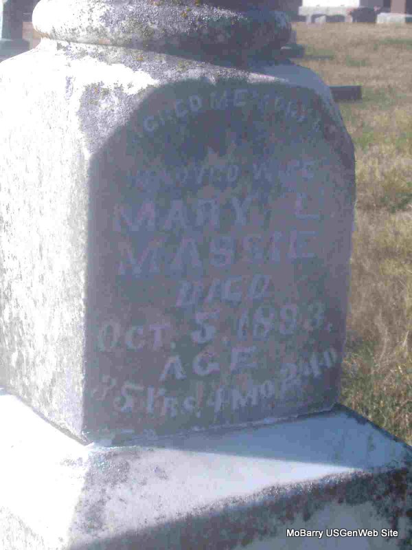 | MASSIE, Mary L. | Abt. 1858 | Oct. 5, 1893 | Inscription: "Aged 35 Yrs 4 M 21 D" | Photo Jay Trace |