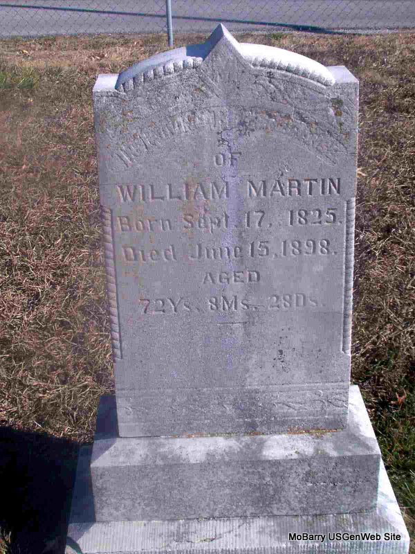 | MARTIN, William | Sept. 17, 1825 | June 15, 1898 | Inscription: "Aged 72 Ys 8 Ms 28 Ds" | Photo Jay Trace |