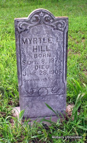 | HILL, Myrtle L. | Sept. 8, 1875 | June 28, 1906 | Inscription: "Gone But Not Forgotten" - Research Note: Daughter of Simeon "Sid" C. and Mary A. (Willoughby) Hill. | Census Phyllis Long Headstone Ruby M. Ruark Snow Photo Jack Fly |