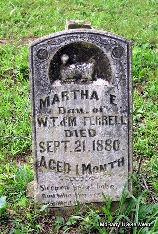 | FERRELL, Martha E. | No Date | Sept. 21, 1880 | Inscription: "Dau. of W. T. and M. - Aged 1 Month" | Photo Jack Fly |