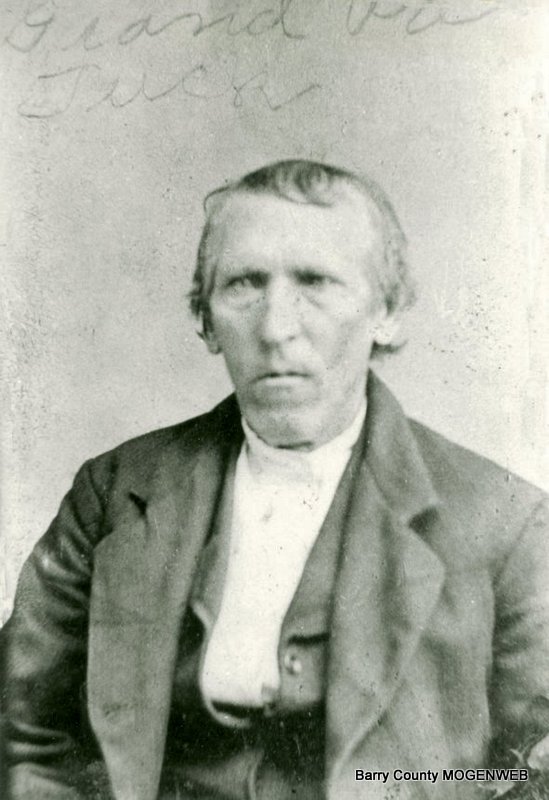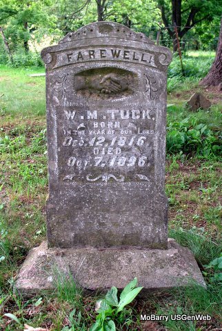 Research Note: Stone reads the 7th. Son of Thomas Tuck and Nancy Nelson. His wife was Sarah Armstrong. - Cassville Republican, Nov. 5, 1896, Barry Co., MO - Billy Tucker - Died Oct. 14, Billy Tucker, age 76. Burial was in Rock Springs Cemetery. - Photo of William | Third GGrandaughter Danene Gray Online Newspaper Donna Cooper Photo Jack Fly |