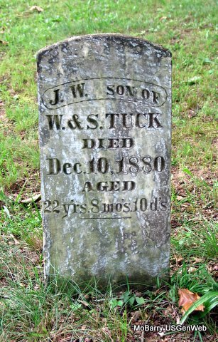 | TUCK, J. W. | Abt. 1857 | Dec. 10, 1880 | Inscription: "Son of W. and S. Tuck - Aged 22 yrs. 8 mo's. 10 d's." | Photo Jack Fly |