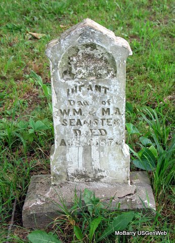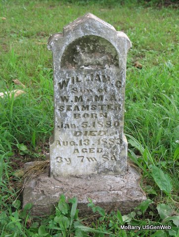 | SEAMSTER, William C. | Jan. 5, 1880 | Aug. 13, 1883 | Inscription: "Son Of W. M. and M. A. - Age 3 Y, 7 M, 5 D" - Research Note: The date that was posted read Aug 10th, stone reads Aug 13th. M. A. was the second wife of Williamson, her maiden name was Mary Ann Pendergraft, she is buried at Gamble Cemetery near Centerton, AR, with her second husband Rev. Charles Seely. | Headstone Cindy Marcell Note Ruby M. Ruark Snow Deceased Photo Jack Fly |