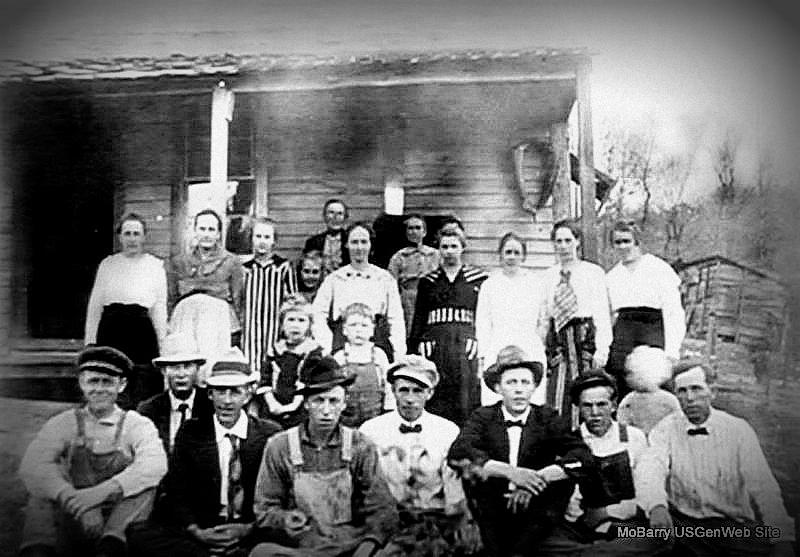Front Row, left to right: Amos Williams, Tom Relethford, Henry Edens, George Henry, Layton Pippin, Leslie Edens, Carney Edens, and Coleman Pippin. Second Row, left to right: Pearl (Edens) Watson, Lawrence Coleman Pippin, and maybe Leonard Galyon. Third Row, left to right: Clara Bell (Pippin) Williams, Mattie (Walker) Edens, Joice Edens, Oval Edens, Chloe Caroline (Roller) Pippin, Nonie Edens, Goldie Pippin, Maud Ethel (Pippin) Snyder, and Katie Edens. Fourth Row, left to right: Steven Bedford Walker and Mary Jane (Tuck) Walker. by Submitted in 2010 by Phyllis Long |
