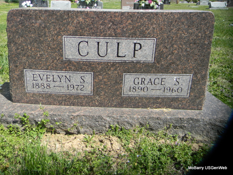 | CULP, Evelyn S. | 1888 | 1972 | SSW: Grace S. - Research Note: Son of William C. Culp and Thursie V. Shelley. | Census Phyllis Long Photo Bill Utter |