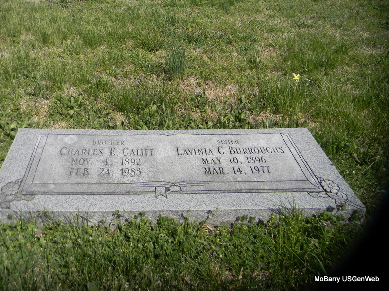 SSW: Lavinia C. Burroughs (Sister) - Inscription: "Brother" - Research Note: Son of Charles and Kate Califf. He was crippled in the right leg and lame foot according to his WW I Draft Registration. - 1900 Census, Ojai, Ventura, California - Charles Califf, head, born June 1850 WI, age 49, married 18 years, father born PA, mother NY; Kate, wife, born Feb. 1860 IL, age 40, married 18 years, mother of 5 children, 4 living; Albert, son, born Mar, 1885 OR, age 15; Chester, son, born Feb. 1889 OR, age 11; Charles, son, born Mar. 1892 age 8; Lavinia, daughter, born May 1896 OR, age 4; Samuel B., father, born Feb. 1826 PA, age 74 married 50 years, father born VT, mother RI; Elizabeth, mother, born July 1831 NY, age 68, married 50 years, mother of 7 children, 6 living, parents born NY. | Sister's DC WW I Draft Reg. Census Phyllis Long Photo Bill Utter |