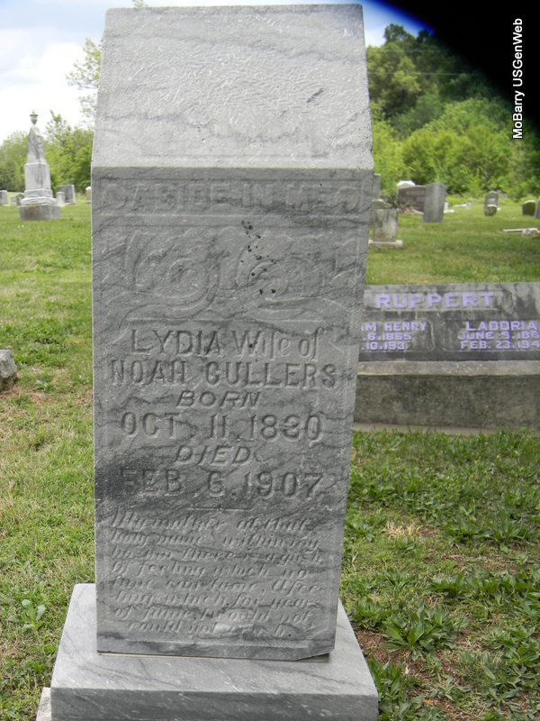 Inscription: "Wife of Noah Cullers" - Research Note: Researchers say she was the daughter of David Clem and Catherine Walter. - Another Photo | Note Phyllis Long Photos Bill Utter |