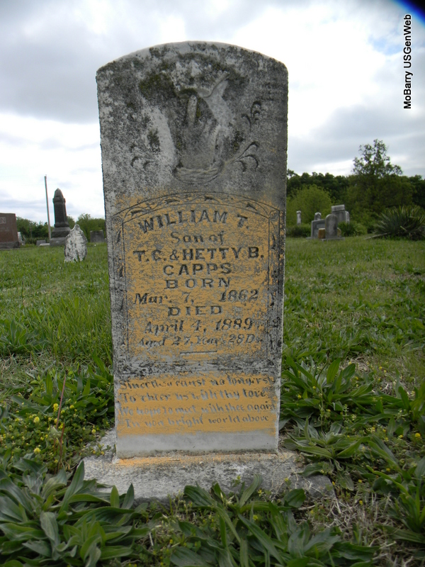 Apr. 4, 1889 | Inscription: "Son of T. C. and Hetty B. Capps - Aged 27 years 28 D." | Photo Bill Utter |