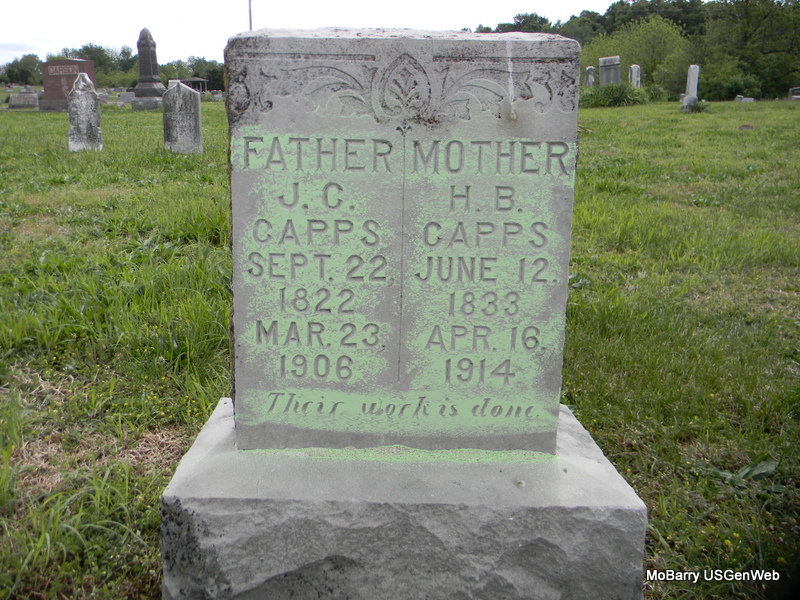 SSW: H. B. - Inscription: "Father" - Research Note: His wife was Hettie. From 1860 to 1900 census, He is Thomas C. Capps. J. C. must supposed to have been T. C. Thomas is also listed on a stone with daughter Dosia as Thomas Capps. | Census Phyllis Long Photo Bill Utter |