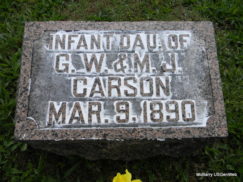 | CARSON, Infant | No Date | Mar. 9, 1890 | Inscription: "Dau. of G. W. and M. J. Carson" - Research Note: Daughter of George William Carson and Mary Jane Estes. | Note Phyllis Long Photo Bill Utter |
